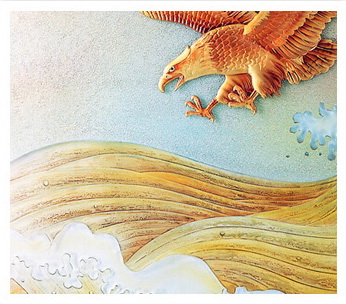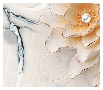 彩雕背景墻是在瓷磚上先用雕刻機(jī)和噴砂機(jī)按路徑打磨出立體效果,然后再打彩上油。市場(chǎng)上大部分浮雕(陰雕或陽(yáng)雕)效果的瓷磚背景墻都是這種工藝。